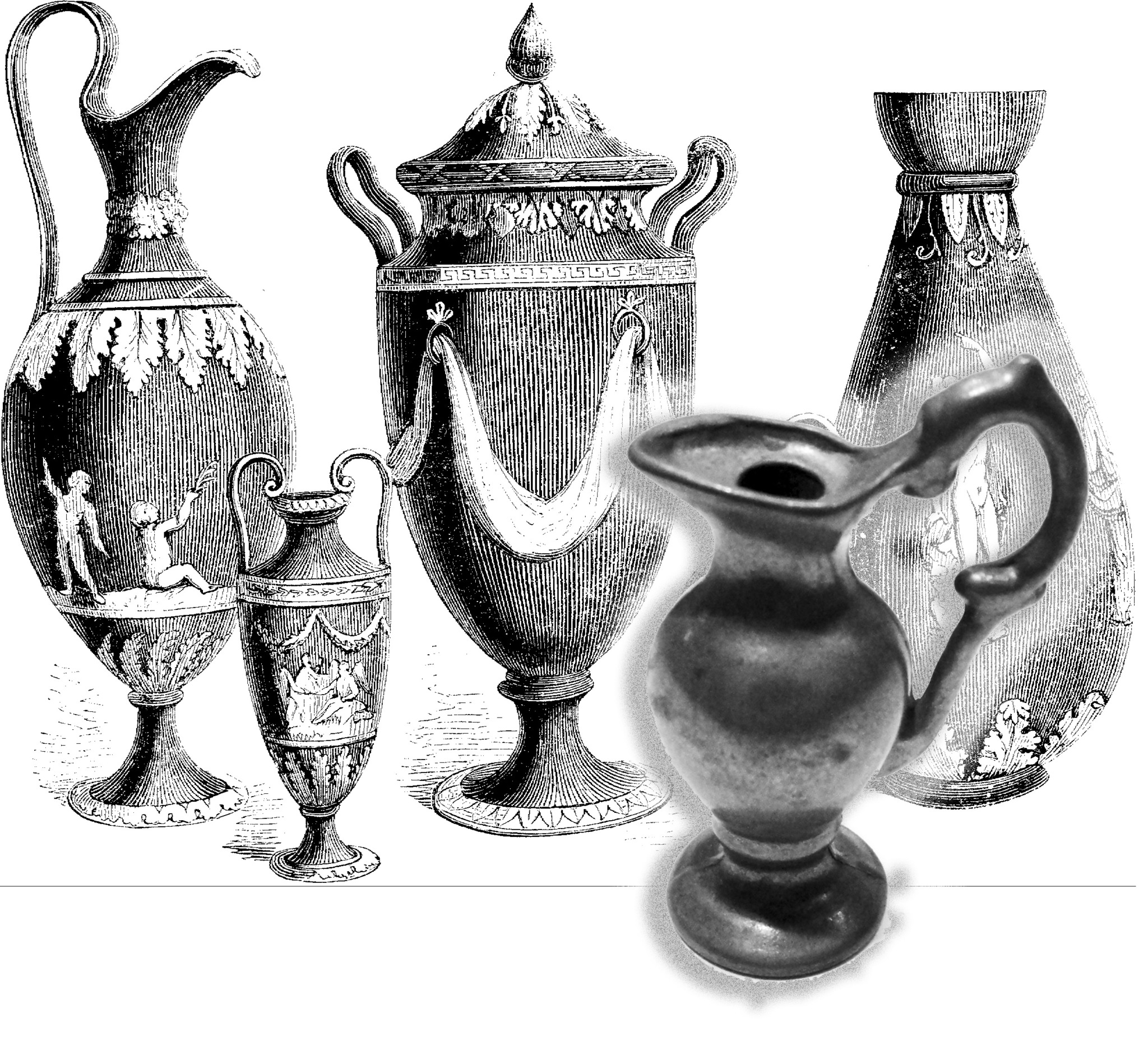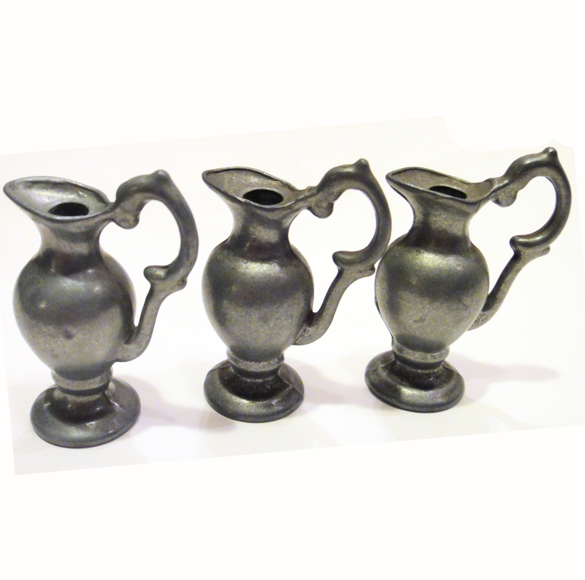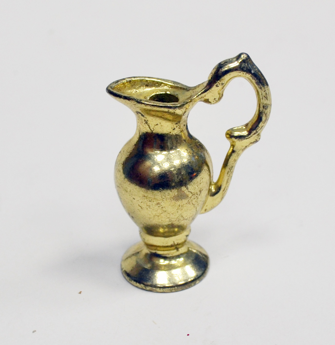 Кувшин с изогнутой ручкой. Материал: металл (олово или латунь). Размеры: высота 6,5 см. Винтажная миниатюра. Англия, начало ХХ в.